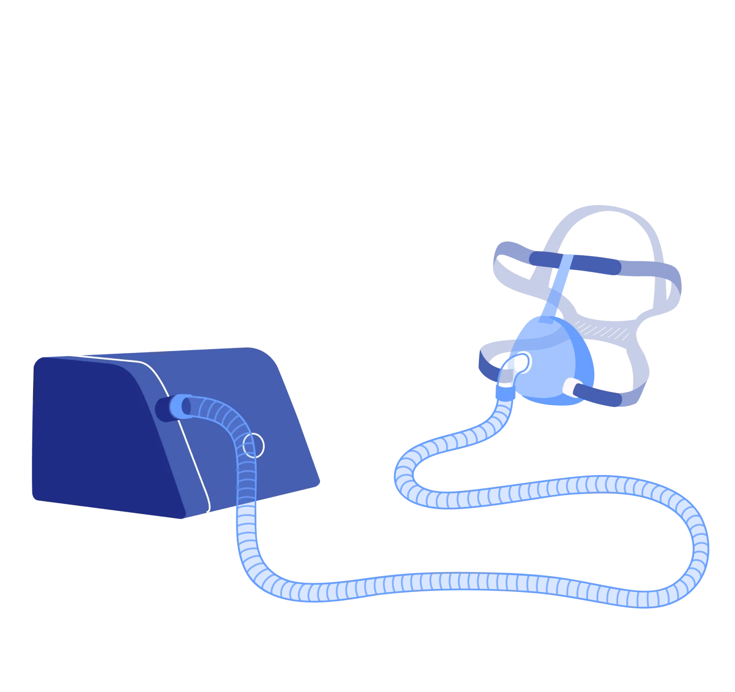 Pour ce traitement, une petite machine qui mesure environ 20 cm est installée chez vous. Elle souffle par pression légère l’air ambiant de la pièce. Cet air est délivré dans un masque et permet de maintenir les voies respiratoires ouvertes pendant votre sommeil, réduisant ainsi très fortement les apnées du sommeil.
